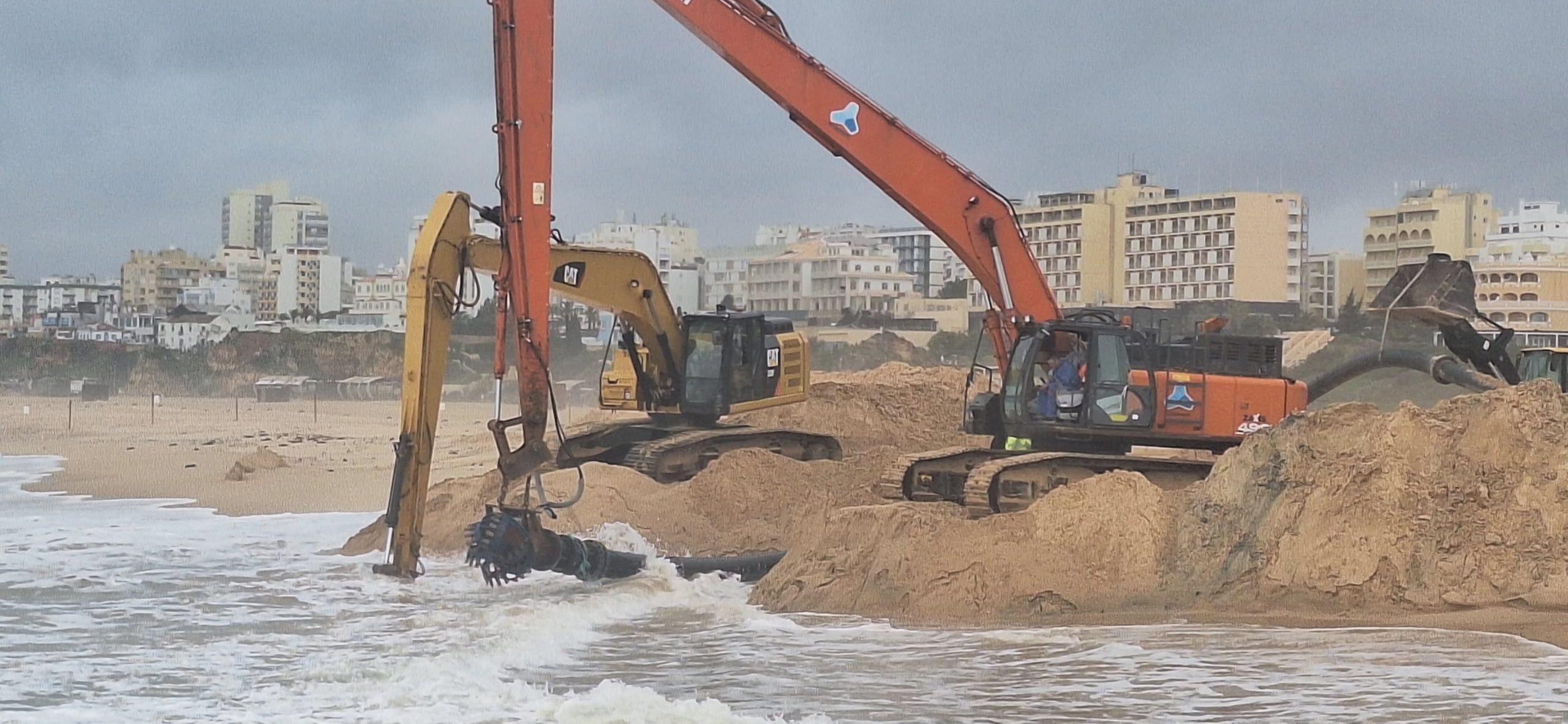 Estou a presenciar, pela primeira vez desde que vivo aqui no Algarve, um trabalho de retirada de areia da Praia da Rocha, que tem muita, para a enviar para as praias do Carvoeiro, do Vau e dos Três Castelos, onde está a fazer falta.
